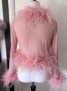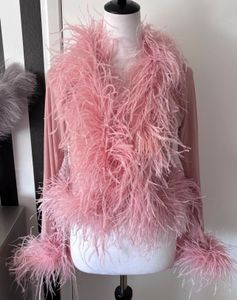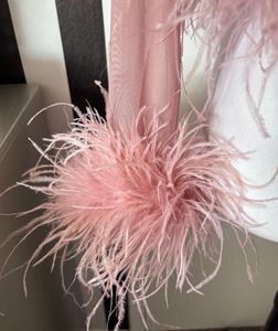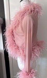 0 savesThis exquisite pink sheer long sleeve cardigan boasts a touch of luxury with its ostrich feather trim adorning the collar and sleeves. The sheer fabric adds an element of allure, perfect for layering over your favorite outfit. Please note, this item is made to order with a production time of 7-10 days, ensuring each piece is crafted with care and attention to detail. Elevate your wardrobe with this statement piece that effortlessly combines elegance and edge.